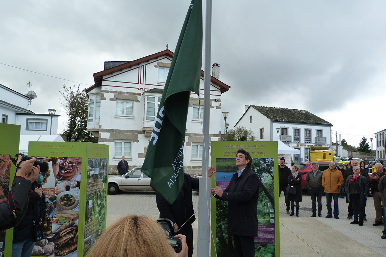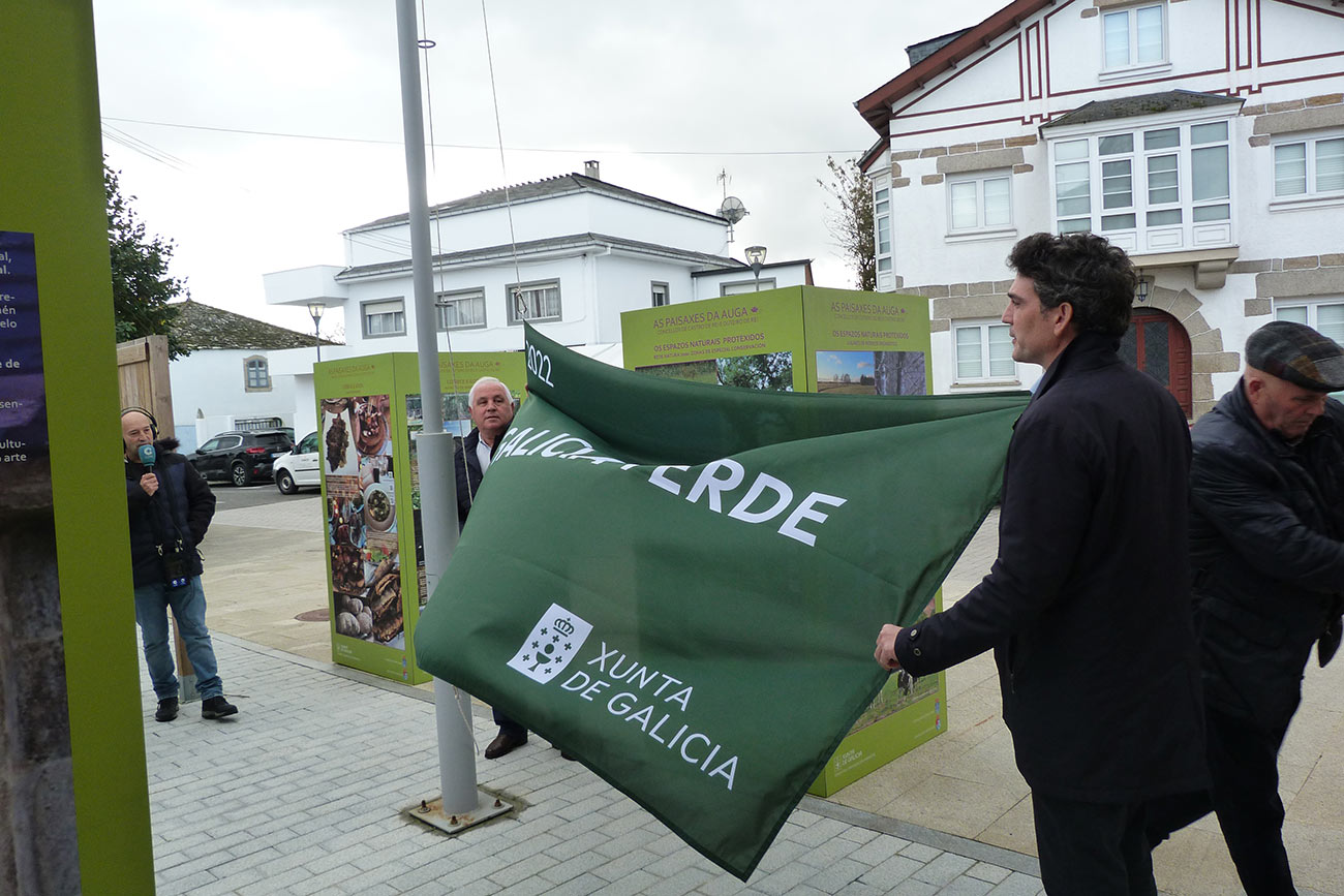 O delegado territorial de Lugo, Javier Arias Fouz, e o alcalde, José Pardo Lombao, participaron no izado da bandeira verde na Praza do Concello, xunto á Casa Consistorial, distintivo que o Concello de Outeiro de Rei acada por segundo ano consecutivo e que foi outorgado recentemente pola Consellería de Medio Ambiente, Territorio e Vivenda para enxalzar as boas prácticas ambientais e de protección e conservación da paisaxe.