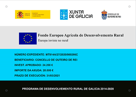Ao abeiro da orde do 26 de decembro de 2019, da Consellería de Medio Ambiente, Territorio e Vivenda, pola que se establecen as bases reguladoras e a convocatoria para os anos 2020 e 2021 das axudas a investimentos non produtivos vinculadas á realización de obxectivos agroambientais e climáticos en concellos incluídos na Rede Natura 2000, cofinanciadas co Fondo Europeo Agrícola de Desenvolvemento Rural (Feader) no marco do Programa de desenvolvemento rual (PDR) de Galicia 2014-2020, ao Concello de Outeiro de Rei se lle concedeu una axuda de 20.000 € para a realización do proxecto “ACONDICIONAMIENTO DO MIRADOR DE PARAÑOS COMO OBSERVATORIO DA PAISAXE E IDENTIFICACIÓN E SINALIZACIÓN DE HÁBITATS PRIORITARIOS E DE INTERESE COMUNITARIO AO LONGO DA RUTA DE SENDEIRISMO MIRADOIRO DA TERRA CHÁ”.