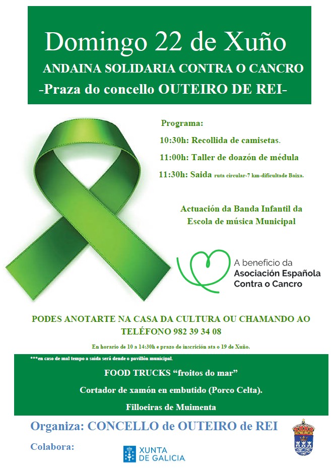 O Concello de Outeiro de Rei organiza para o DOMINGO 22 DE XUÑO unha andaina solidaria contra o cancro.