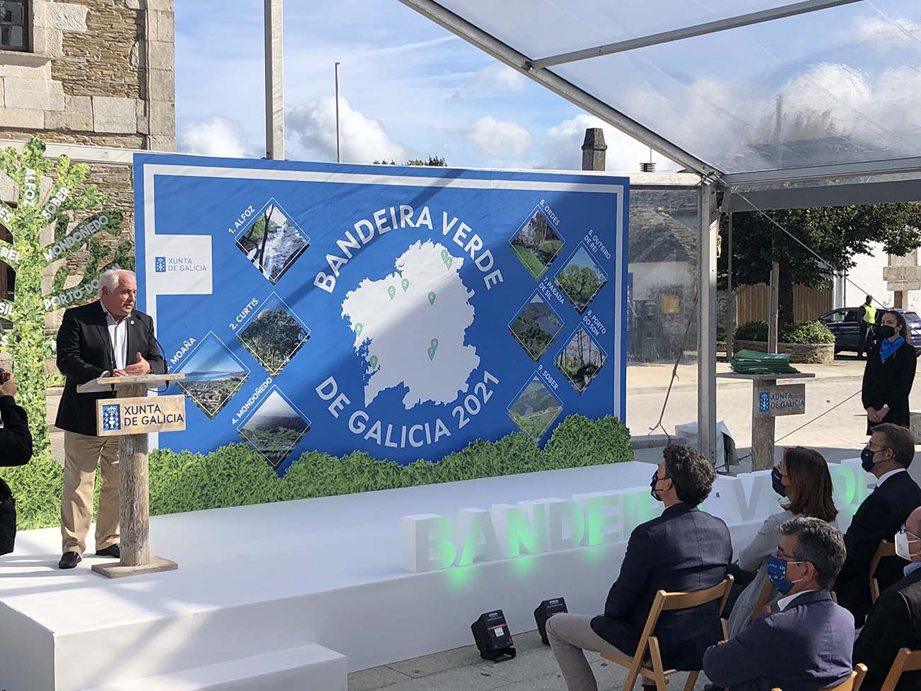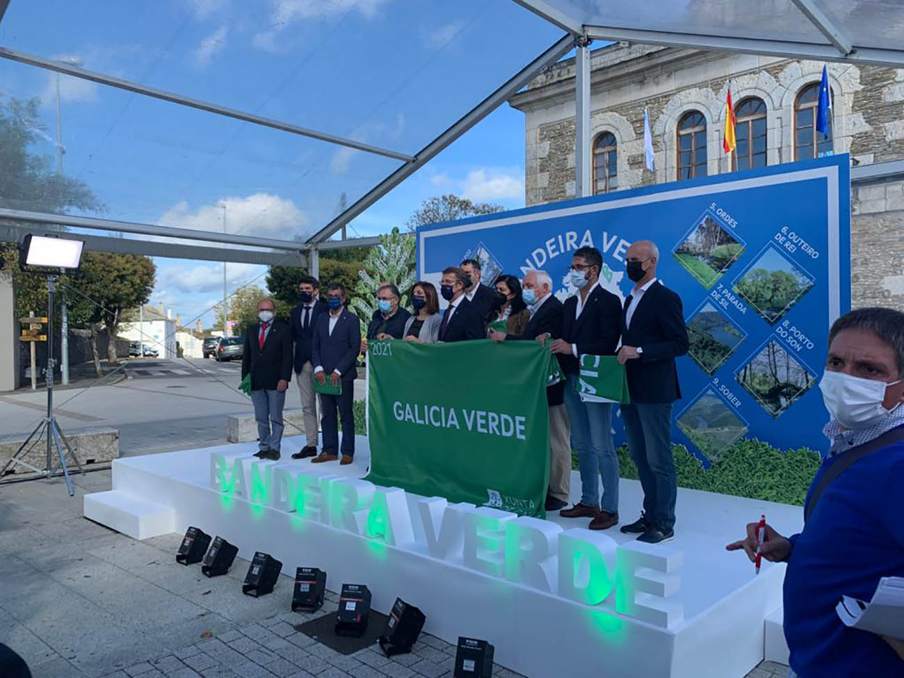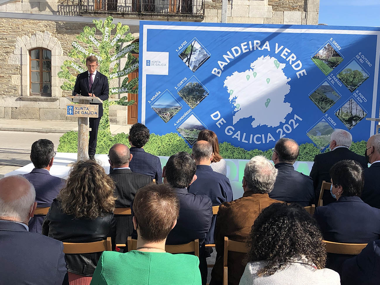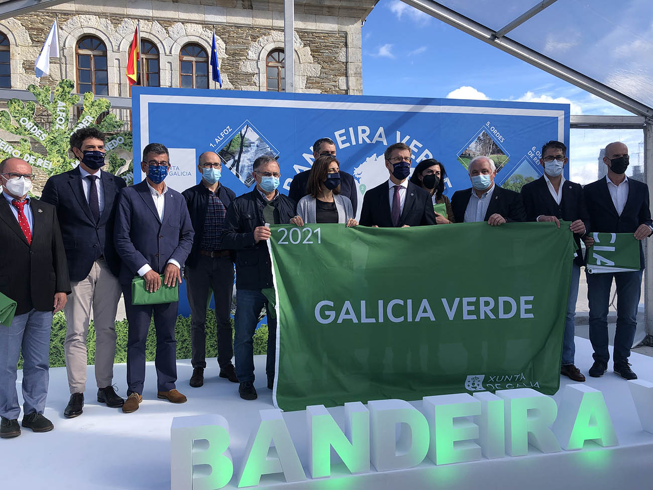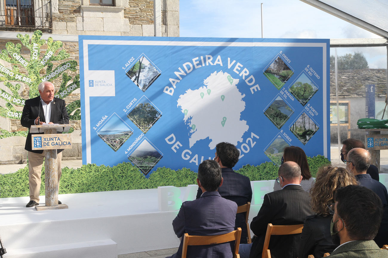 Este mércores tivo lugar na praza da vila de Outeiro de Rei o acto de entrega de Bandeiras Verdes de Galicia promovido pola Xunta de Galicia e das que foron merecedores os Concellos de Outeiro de Rei, Mondoñedo, Alfoz, Sober, Curtis, Moaña, Ordes, Parade de Sil e Porto do Son.