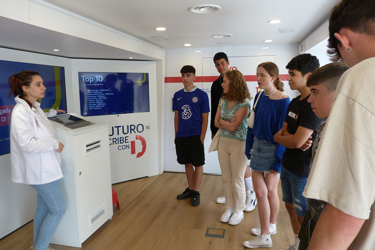 De regreso a Outeiro de Rei puideron poñer en práctica as súas competencias dixitais na iniciativa dixital Generación D que tiña instalado un autobús na Praza do Concello.