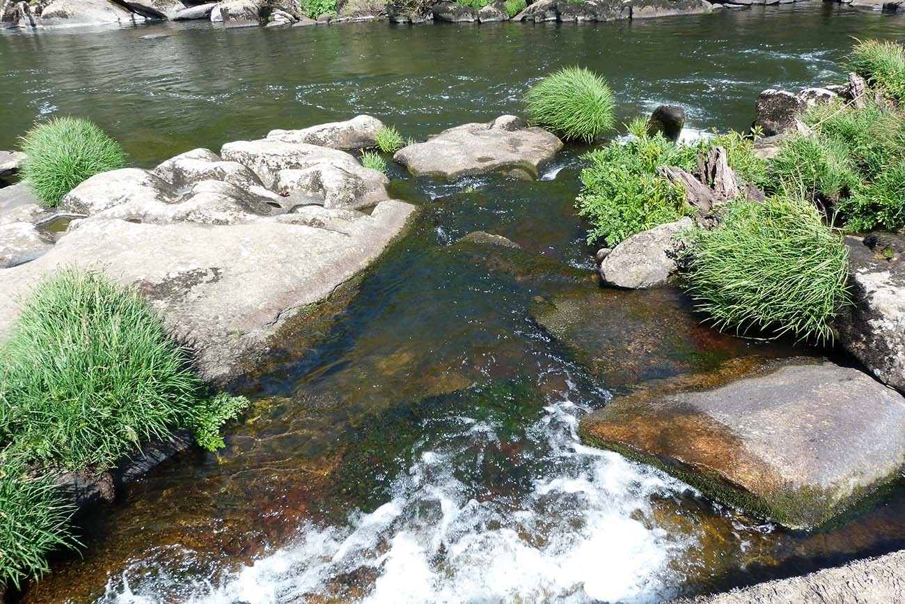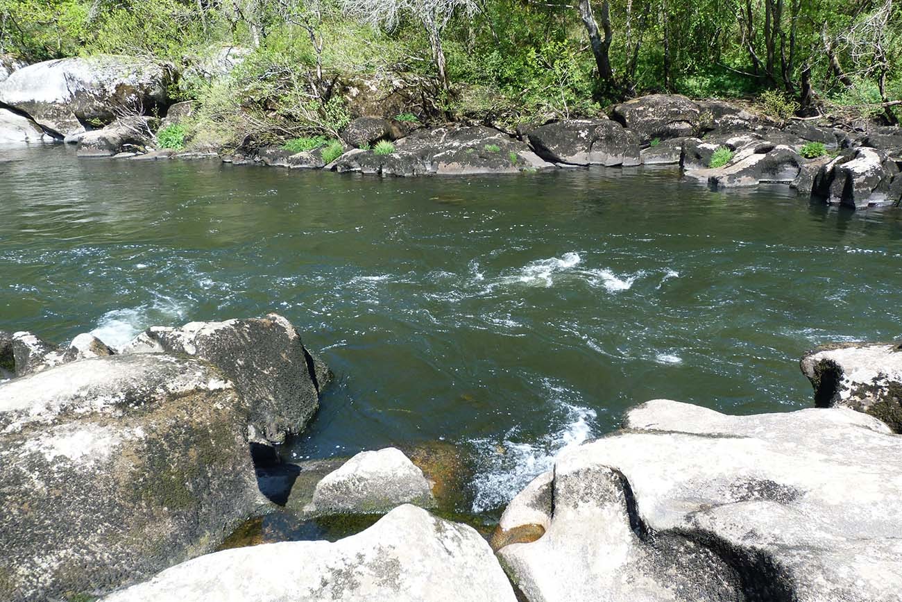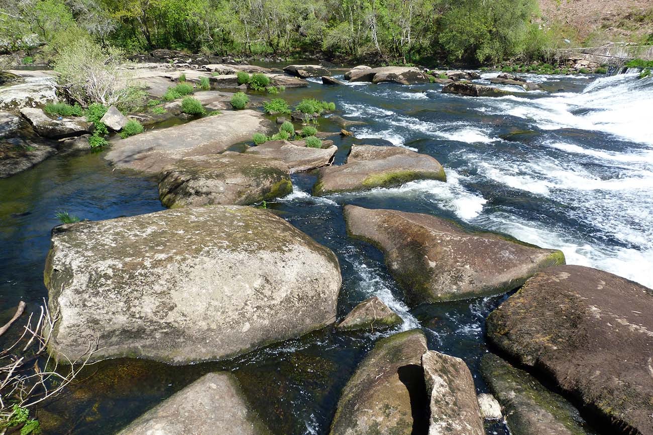 Dependendo do caudal do río quedan á vista unhas rechamantes formas rochosas. Nalgúns casos, totalmente planas e noutros noutros aparecen como marmitas de xigante, formas erosivas sobre o granito, de forma redondeada, producidas polos remuíños da auga que desgastan a roca.