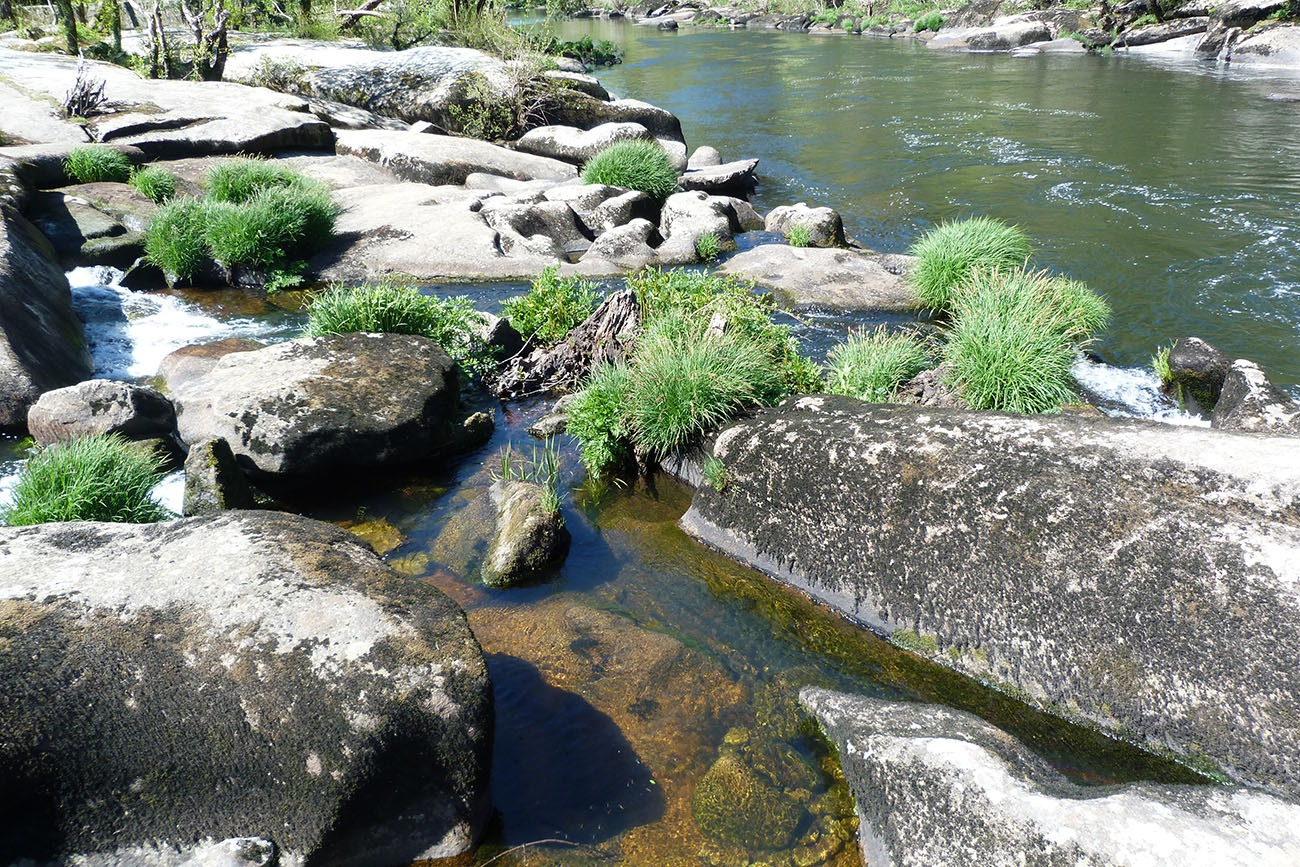 Dependendo do caudal do río quedan á vista unhas rechamantes formas rochosas. Nalgúns casos, totalmente planas e noutros noutros aparecen como marmitas de xigante, formas erosivas sobre o granito, de forma redondeada, producidas polos remuíños da auga que desgastan a roca.