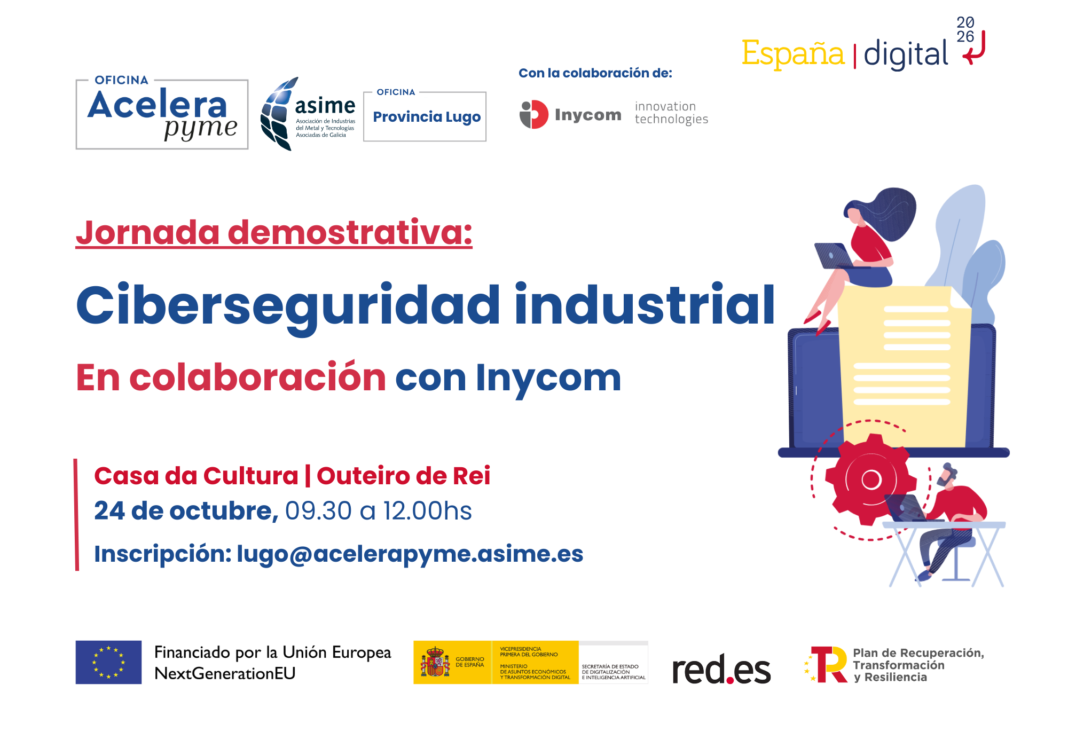 Máis información: https://acelerapyme.asime.es/lugo/evento/proyecto-demostrativo-ciberseguridad-y-seguridad-industrial-con-inycom-outeiro-de-rei/